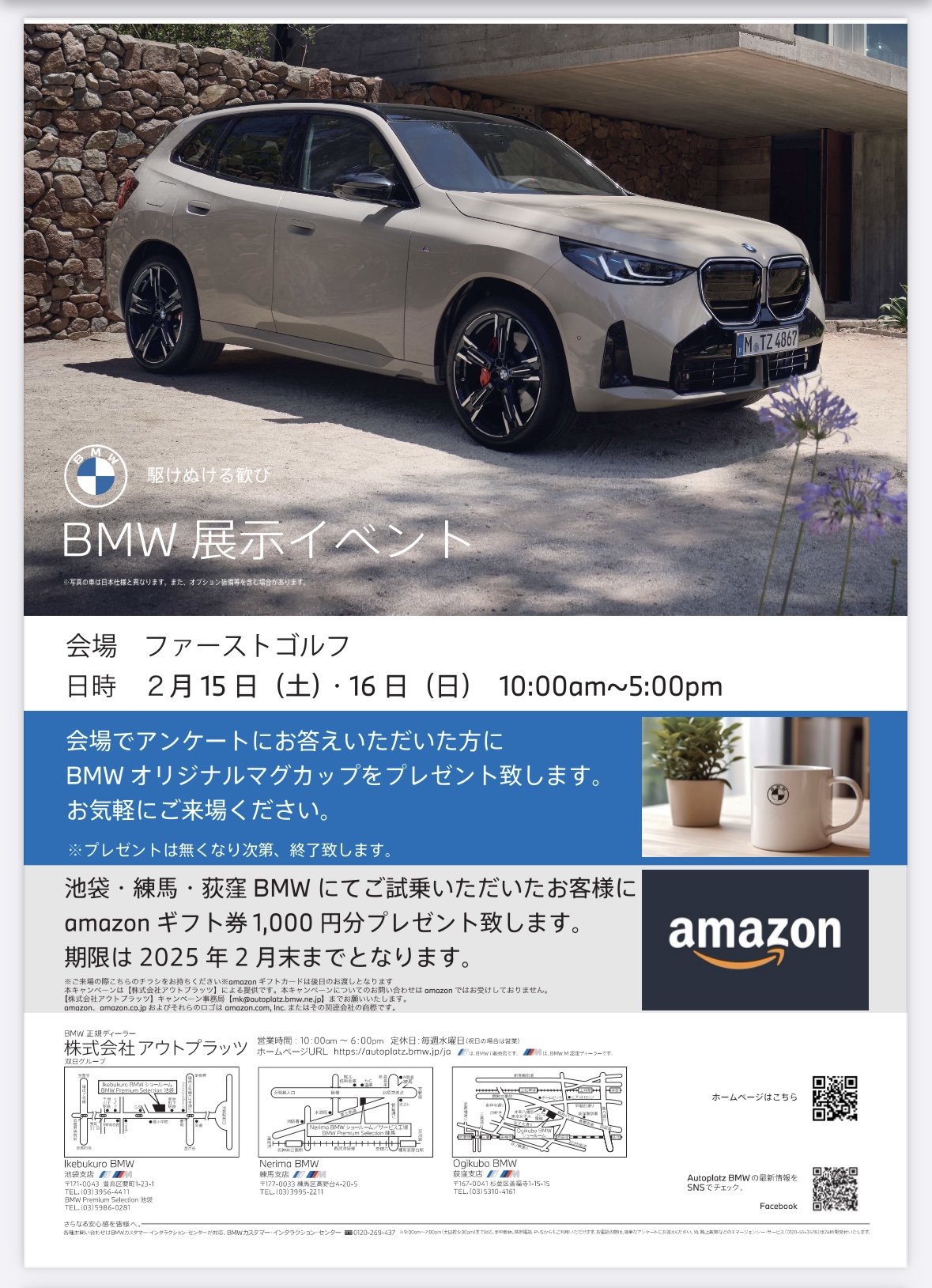 2月15日(土)・16(日)は、池袋BMWさんによる最新車両展示会を行います。
