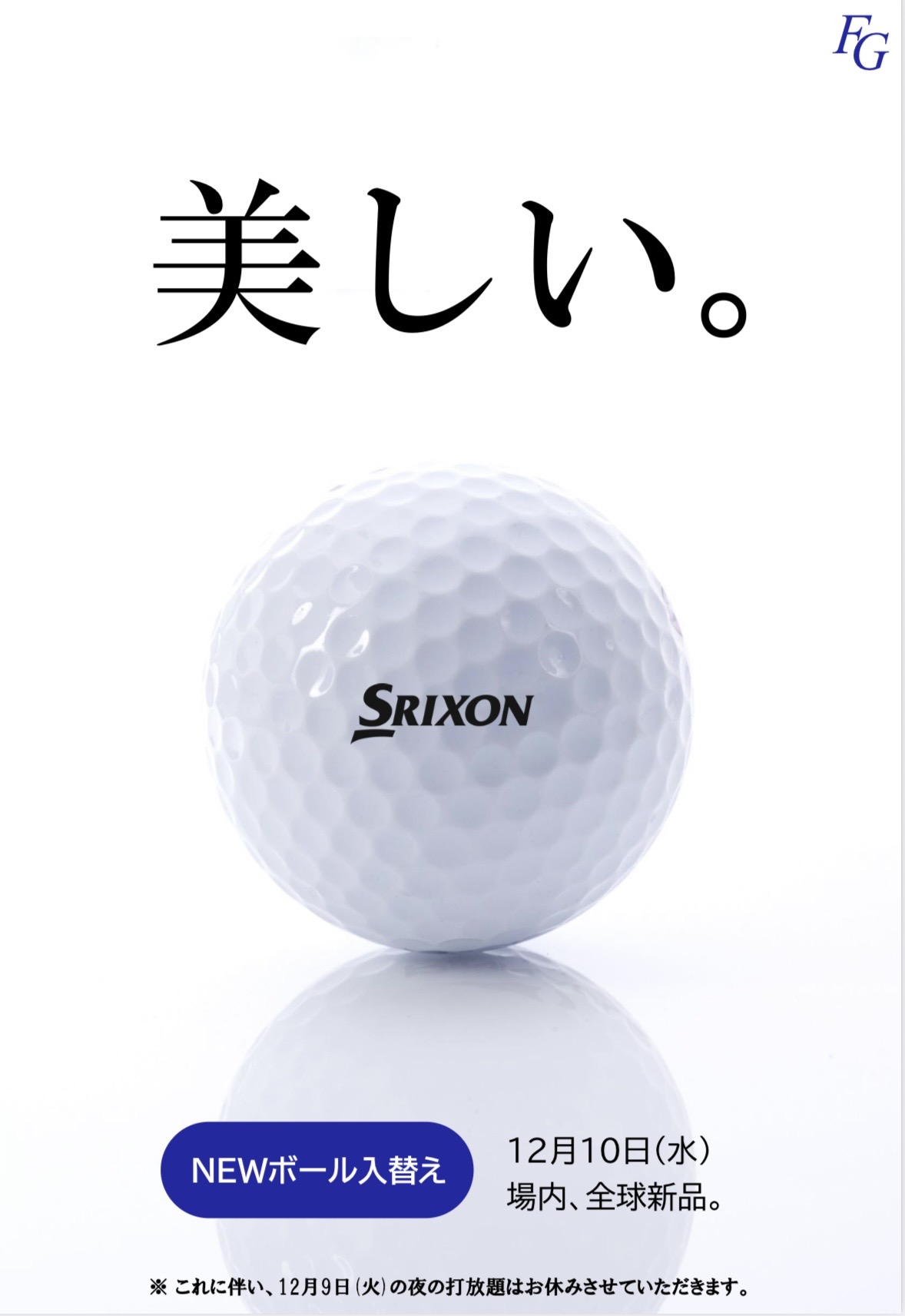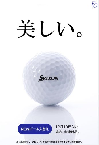 ※これに伴い、12月9日(火)の夜の打放題はお休みさせていただきます。ご了承下さい。
